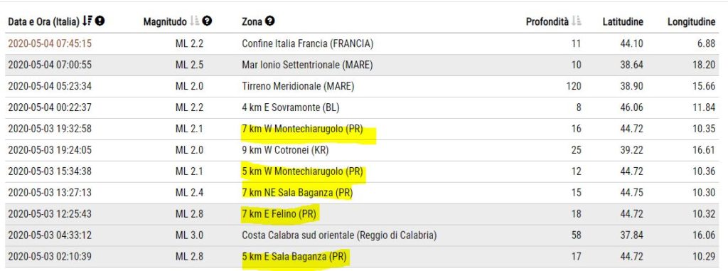 Reggio Emilia Parma sisma Terremoto Ingv epicentro sciame sismicoNelle ultime ore 37 micro scosse di terremoto tra le province di Reggio e Parma