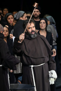 Il baritono De Candia applaudito Fra’ Melitone, ne La forza del destino, al Festival Verdi (Foto Ricci)